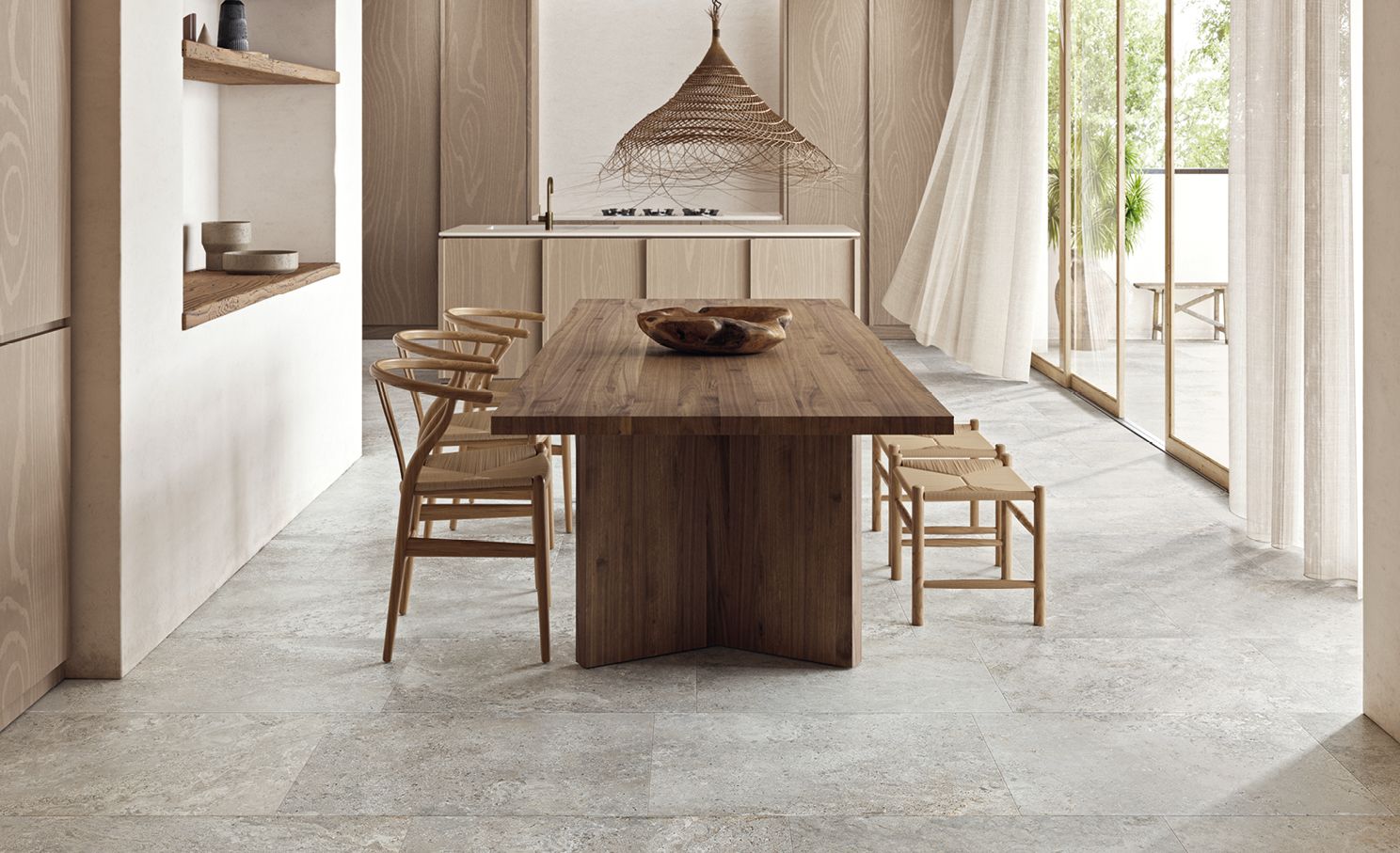 Soft, calming stone-effect surfaces for welcoming, timeless interiors