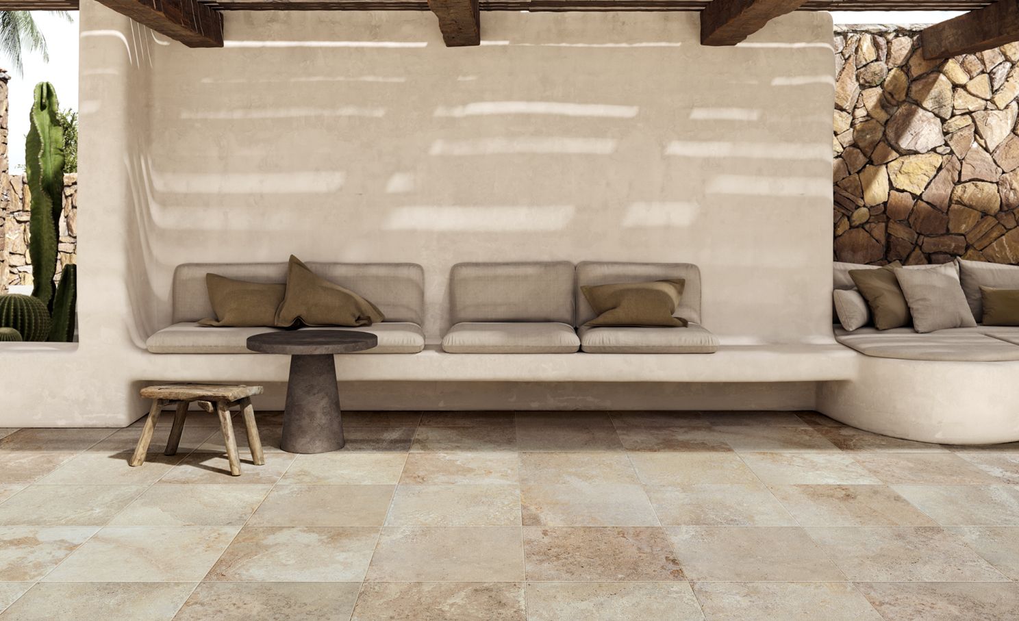 Whether used in open-plan living areas, peaceful bedrooms, bright kitchens or transitional spaces, Frontera creates a sense of quiet harmony. The understated variation adds depth without distraction, while the warm neutral palette works beautifully with wood, natural fabrics, soft paints and contemporary finishes. Decorative elements such as mosaics and linear textures introduce refined detail where needed, while maintaining the relaxed, natural character of the range. Durable, low-maintenance and easy to live with, Frontera offers the comfort of stone with the practicality of porcelain.